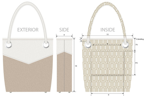 Vinyl can be tricky to work with if your layers get very thick. To make sure our bag construction was as easy as possible, and with as few layers as possible, we came up with unique ways to create the handles as well as how to achieve that dramatic front chevron. We also show you when and where to cut back the vinyl and/or the foam to help reduce bulk.