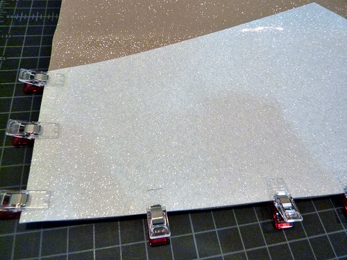 - Find the two upper 18″ x 7″ vinyl panels (sparkle ivory in our sample). Place one panel right side up and flat on your work surface.