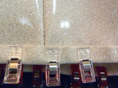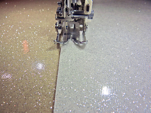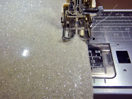 - Parchment paper; optional, but it was our choice for some of the topstitching on this extra-sticky sparkle vinyl