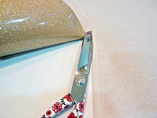 - Fold in each end ⅜” to make a finished square end tab. We used a bit of seam sealant along all the cut edges.