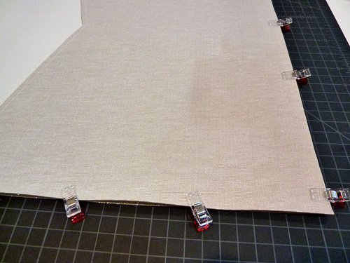 - Flatten each corner, aligning the side seam with the bottom seam. Clip in place.