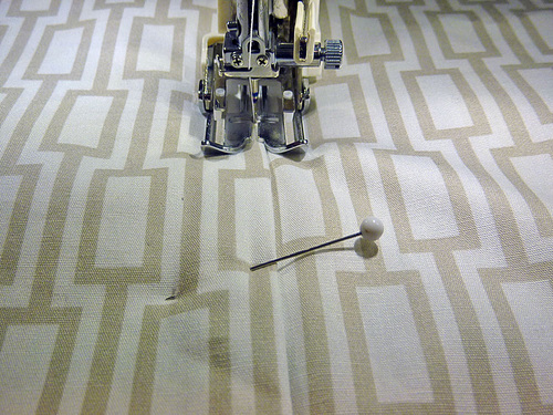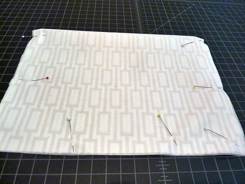 - Pin along both sides and across the bottom, leaving a 3-4″ opening along the bottom for turning.