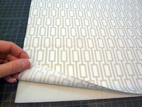 - Place the lining panel right side up on the foam, aligning all four sides of the fabric with the foam.