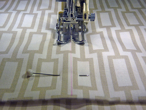 - Using a ½” seam allowance, stitch along both sides and across the bottom, pivoting at the corners.