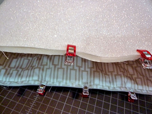 NOTE: As mentioned above, you could use the one-sided fusible foam. If you choose this option, your foam cuts should be ½” smaller all around than your fabric panels. Simply center a foam panel on each lining panel and follow manufacturer’s instructions to fuse in place. All other steps remain the same.
