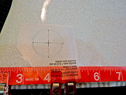 - The Dritz Home Grommets come with a template, which we clipped into place in order to trace the circle.