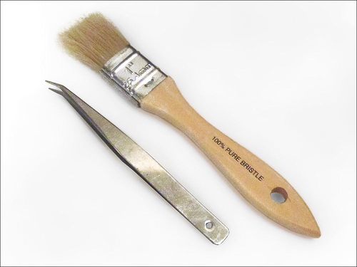 Your serger should come with tweezers; they make it easy to reach into the tight spaces when threading. The second super handy tool is a brush to help keep the lint at bay. Sergers create a lot of lint, dust, and scraps because of their cutting action. A can of compressed air is also a good cleaning aid.