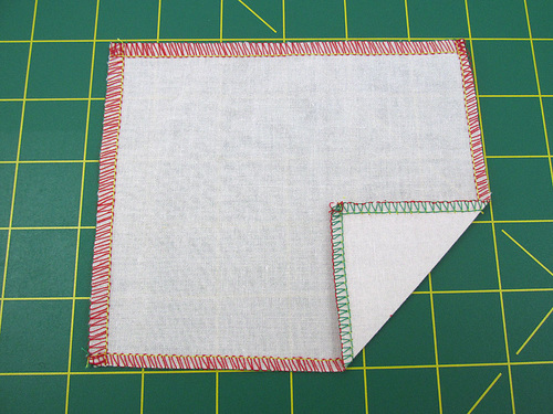 Our thanks to Janome America Education Coordinator, Nancy Fiedler for providing her helpful tips and samples. She worked on a Janome 1100D serger and used four different thread colors to make it easy to keep track of which thread was doing what.