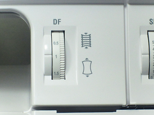 The speed ratio of these feed dogs can be adjusted to compensate for fabrics that stretch or pucker. Turn the dial higher to ease fabric that is stretching. Turn the dial lower to stretch fabric that is puckering.
