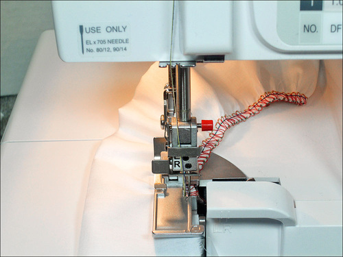 If you use quite a bit of lightweight and sheer fabric, you may want to investigate 2-thread capabilities. A 2-thread overcast or rolled hem lays better because the lighter weight will not compromise the fabric. In the same way, if flatlocking is one of your favorite techniques, a 2-thread flatlock will be even flatter because, as with the rolled hem, a thread has been eliminated.