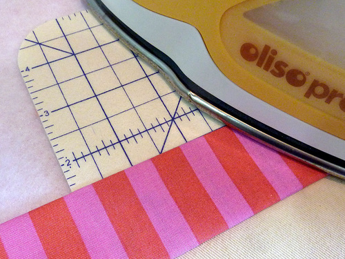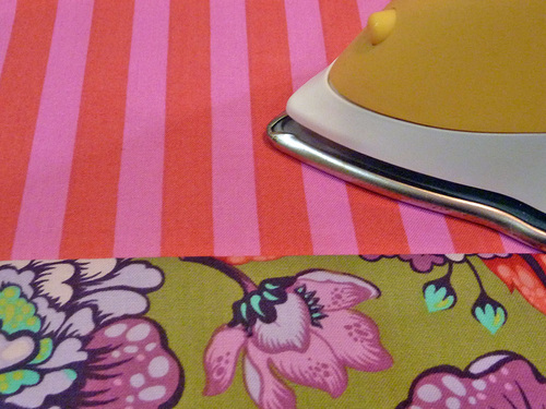 - Along the top of each main panel, fold back the raw edge ½” and press. We used a Clover Hot Hemmer.