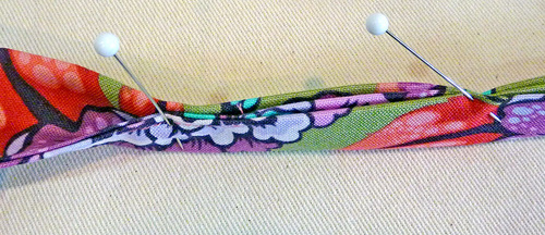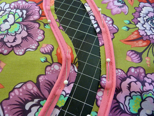 NOTE: We worked with the piping as a continuous length, cutting it flush to the sides of the pocket when fully pinned in place.