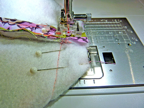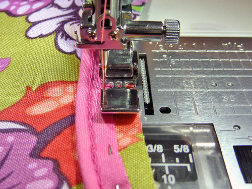 - Machine baste the piping in place. We used our Janome Zipper foot.