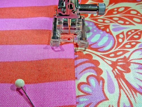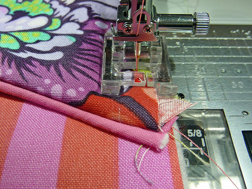 - Using a ½” seam allowance, stitch together.