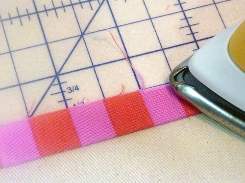 - Press back each 28″ raw edge of each strip ½”. Then press in each end ½”.