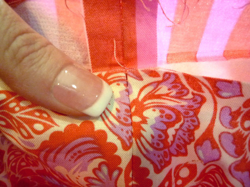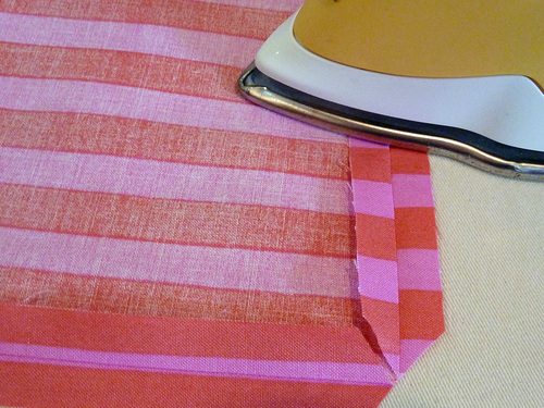 - Press the pocket flat, pressing in the raw edges of the opening so they are flush with the sewn seam.