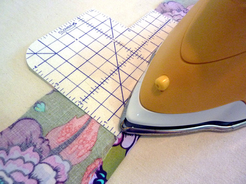 - Press each strip in half lengthwise, aligning the folded edges on all three sides. Press to set a center crease.