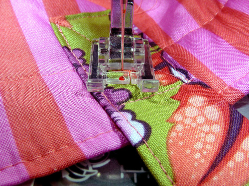 - Double stitch across the corner, using a ½” seam allowance.