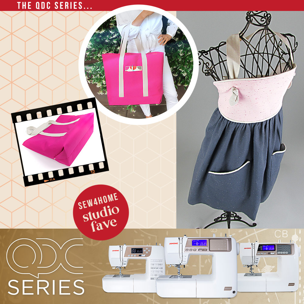 Top-of-the-line is always wonderful, but one of the things we have always appreciated about Janome is how their quality extends throughout their line: from feature-packed sewing and embroidery models to entry level workhorses. We really enjoy sewing with the QDC series, a trio of powerful yet economical models with some of the most popular time-saving features, like an automatic thread cutter, advanced start/stop button, and sensor buttonholes. The 5300QDC was perfect for our recent Easy Elegance Apron as well as our fun Bright Spot Tote.