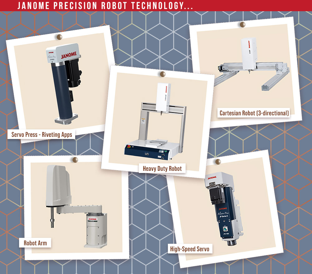 The company’s manufacturing prowess has also made it a world-leader in the development of high precision robots. Janome is the only sewing machine manufacturer with a sister division that makes precision-guided robots for the high tech industry. As printed circuit boards used in electronic devices became smaller and smaller, Janome’s precision control technology was in high demand across a variety of fine manufacturing processes, including micro screw tightening, soldering, and product testing using mounted miniature cameras. These jobs require exacting precision, and Janome robots soon became indispensable on the factory floor.