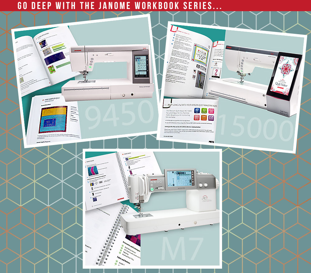 If you’re a Janome enthusiast with one of these favorites, check out our article about their awesome Workbook Series. Books are available now for the MC15000, Continental M7, as well as the Horizon Memory Craft 9450 QCP.