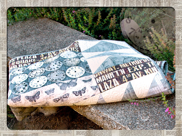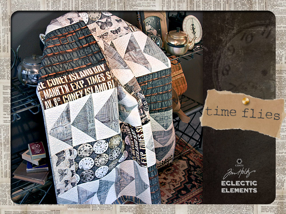 - Our Time Flies Quilt is machine quilted in a sampler style. The majority of the quilting is done with a Walking foot and straight line quilting, switching to free motion quilting in just the smaller, easier-to-manipulate areas.