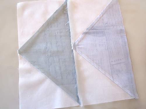 - And as above, press the seam as sewn, then press the corner away from the block.