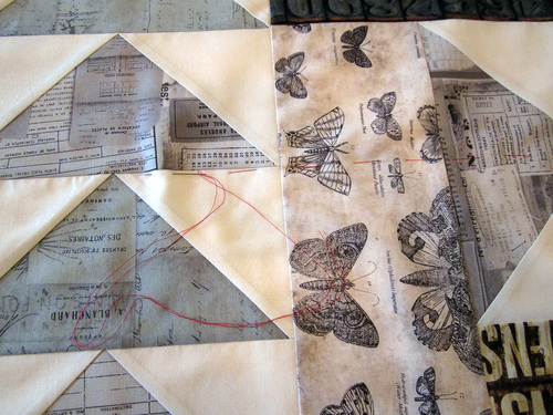 - Here’s a close-up of one of the finished Butterflight in Taupe blocks.