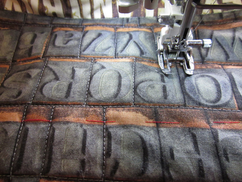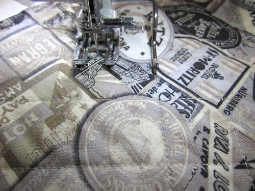 - The Stamps in Neutral blocks also have dominate lines, but they are staggered. Quilt the horizontal parallel lines first, then quilt the vertical lines, jigging and jagging as necessary to match the printed divisions.