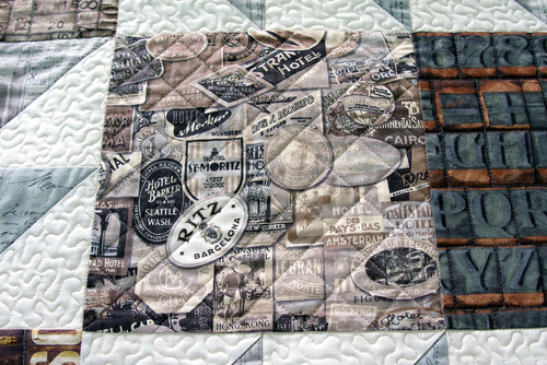 - Here’s a close-up of the finished Travel Labels in Taupe block.