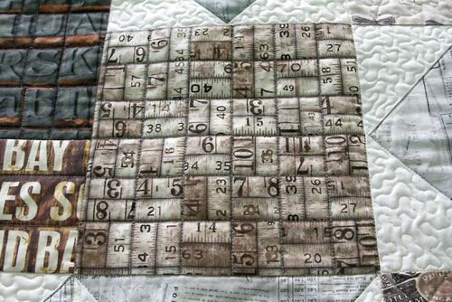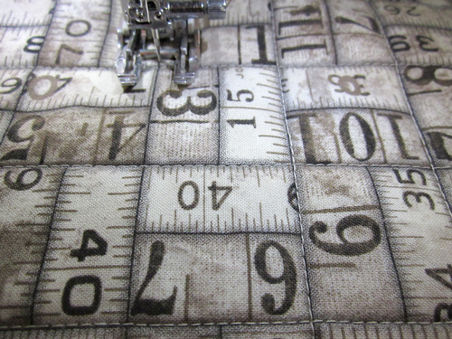 - The Measurements in Taupe block comes with its own built in grid, so no marking is necessary. Quilt this block following the lines of the print.