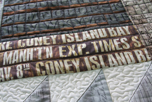 - The Subway Signs in Neutral blocks also have distinct parallel lines built in to the print. Quilt parallel lines following the dominate lines in each strip.