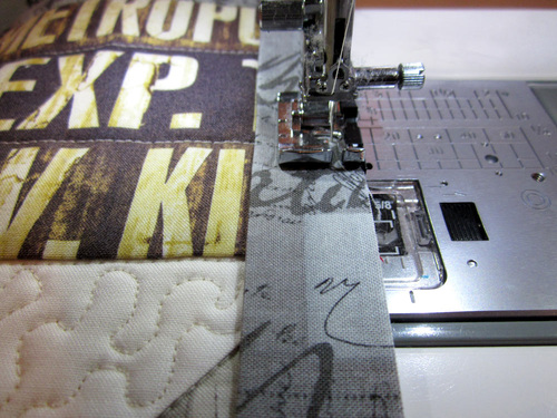 - Fold and press into finished binding and attach to the raw edge of the quilt.