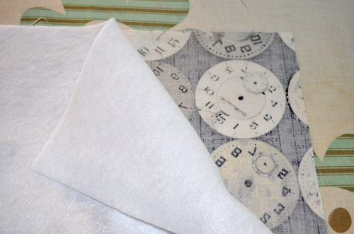 - Find the two pieces of fusible fleece. Following manufacturer’s instructions, fuse one piece to the wrong side of both the front and back.