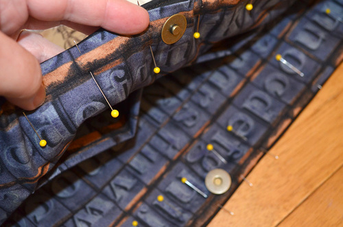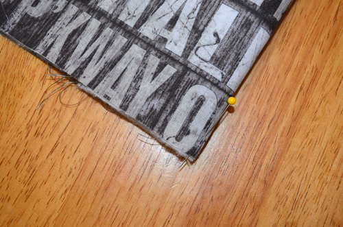 - Press the seam allowance down towards the inside of the tote so the piping stands up around the edge. Lightly pin the seam allowance in place.