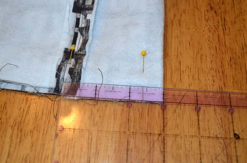- Pin each end in place, then stitch in place with an approximate 1½” “X-box” through all the layers.
