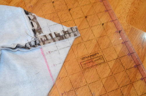- Turn the tube wrong side out. Re-fold, using the pin marks as your guide. The vertical seams should still all align. The outermost seams should be 3″ in from the side folds.