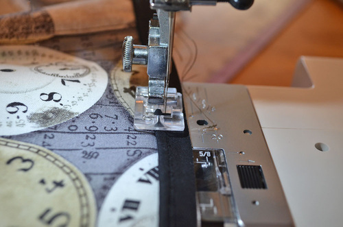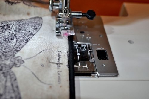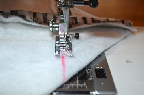 - Edgestitch all around top, through all the layers. Your seam should run just below the piping within the fabric.