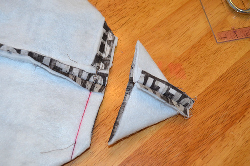 - Turn right side out. Push out the corners so they are nice and sharp. A chopstick or long knitting needle works well for this.