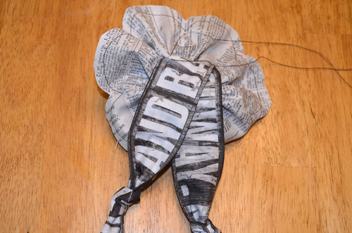 - Hand sew the tails to the back of the flower, covering the glue and the raw edges.