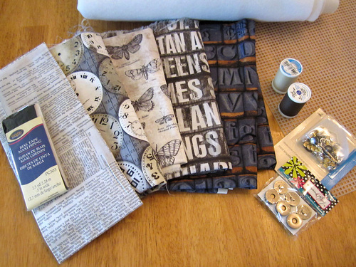 - ¼ yard of 44-45″ wide cotton for the fabric flower embellishment; we originally used Dictionary in Neutral from the Eclectic Elements Collection by Tim Holtz for FreeSpirit