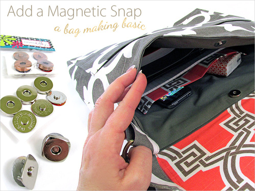 The magnetic snap is indispensable to the construction of purses, totes, and bags. We’ve used them on dozens of Sew4Home projects, and especially love their ability to add hidden closure on flaps. Our tutorial shows you the basic steps for marking, reinforcing, and installing. Go to the Magnetic Snaps tutorial.