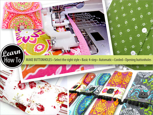 The most basic of closures, but with the largest variety of sizes, shapes, and styles (depending on your machine). We have easy instructions on how to put in a buttonhole for both automatic and basic sewing machines. From marking where it goes to hiding that final thread tail. Go to the Machine Buttonholes tutorial.