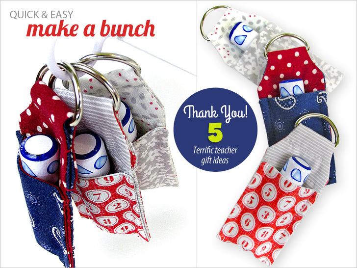 Rumor has it that teachers get to go outside during their summer break. Make sure they have chapstick at the ready to keep lips moist and protected from the elements. Our mini lip balm key ring pouches are a Sew4Home fast and easy classic. Create a Complete Gift Package: add several tubes of high-end lip balm along with some crazy sunglasses or a baseball cap.