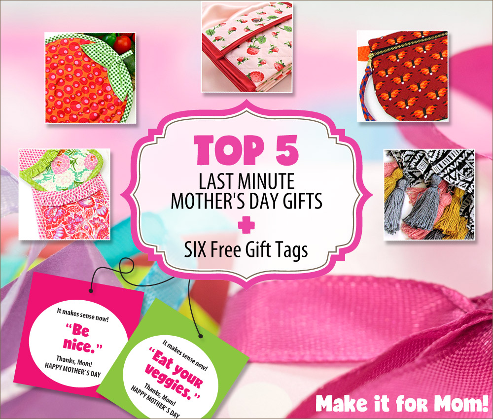 Mother’s Day is a week and a half away. But you knew that, right? Maybe you were waiting for a burst of inspiration? Well, that’s our job! We pulled five fun projects you can easily make in a single afternoon. The fabric and supply requirements are minimal; you may already have the perfect options in your stash. From cooking to traveling to looking good, these five favorites are sure to please the mom, stepmom, grandmom, and you’re-like-a-mom-to-me women in your life. To make your gift extra special, we have a new set of free printable “Mom Said! Gift Tags” to thank Mom for all her advice. They celebrate all those words of wisdom you ignored at the time but now wish you’d paid attention to because they make so much sense now! Thanks, Mom!
