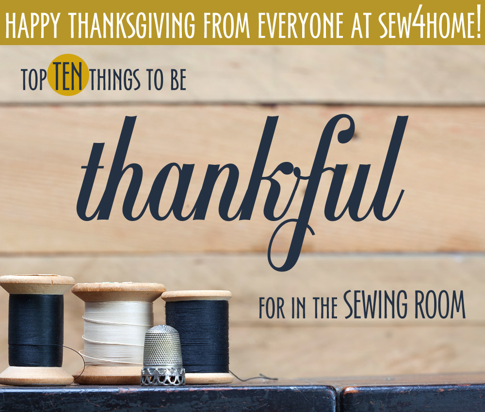 Happy Thanksgiving from your friends at Sew4Home! It’s a glorious day for family, friends, and food. But if you’re searching for an excuse to sneak out of the room before Uncle Tony starts into his annual holiday re-cap of the new traffic cones he’s added to his already burgeoning collection, why not browse for a bit on Sew4Home? We’ve compiled a few things that raise our “attitude of gratitude” here in the world of sewing and craft. Read on, and leave us a comment about what you’re thankful for!
