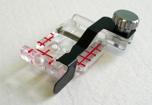 If you’re looking for a foot to use for topstitching, edgestitching and several other jobs, this three-in-one foot is great. It comes with two removable guides: the Quarter Inch Guide and the Ditch Stitch Guide, and it has lots of great measurement markings (in bright red) to help you perfectly line up a seam.