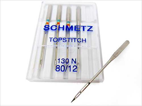 There are specific topstitching needles, which have a larger eye and so can better accommodate the heavier thread sometimes chosen when you want your topstitching or edgestitching to really stand out. But in general, it’s often better to select the needle best suited to your fabric.