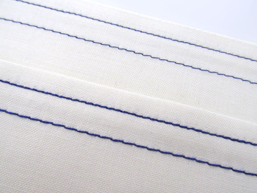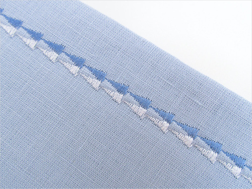 Some of our Janome studio machines also include a “hand-picked” or “Sashiko” style stitch that is lovely along a finished edge. If you also work on a Janome machine, check the Quilting section of your decorative stitches selection for this option.