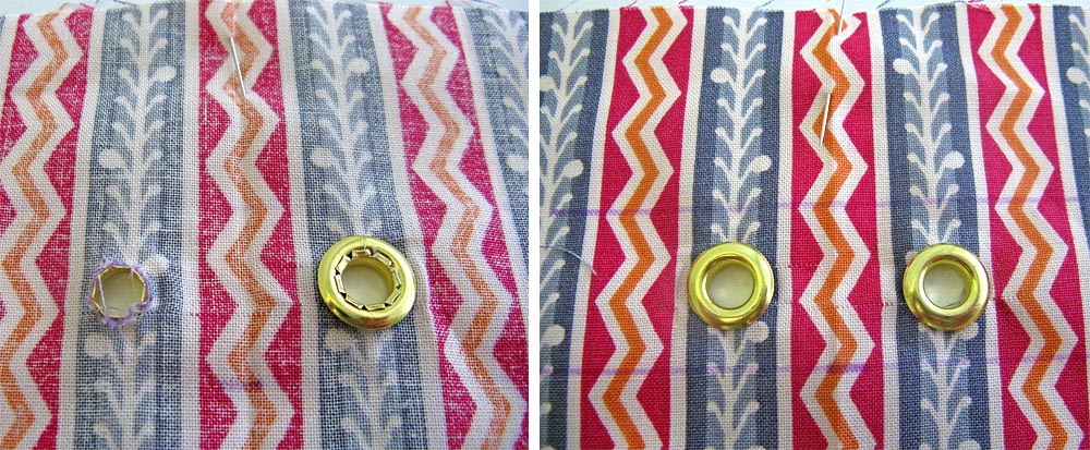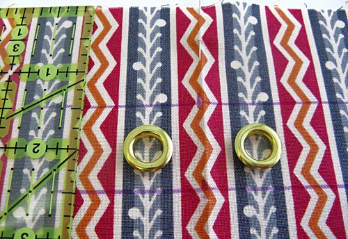 NOTE: If you don’t the idea of grommets, you could use one long horizontal buttonhole instead.